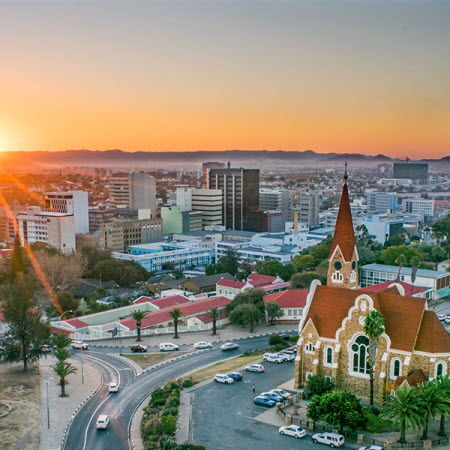 Die vielen Beispiele deutscher Kolonial Architektur, unter strahlend blauem Himmel, sind die Motive vieler Fotografien von Windhoek. Das Reiterdenkmal als Erinnerung der Opfer des Aufstandes von 1904; dahinter die Alte Feste umrahmt von Palmen; die Christuskirche vor den gepflegten Gärten des Tintenpalastes; das Parlament und der alte renovierte Bahnhof im Nordwesten des Stadtzentrums.