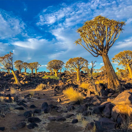 Embracing eastern Namibia and western Botswana, the Kalahari forms a large basin which stretches from north-eastern Namibia down to South Africa. Lines of parallel red dunes, usually with tufts of tall grass, are a characteristic feature. Due to underground water gnarled old acacias can often be found in the valleys between the dunes. As unbelievable as it may sound: this dry, inhospitable landscape is the habitat of many animal species.